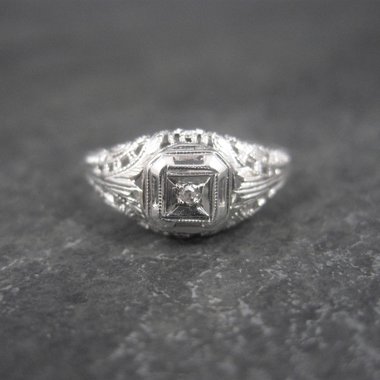Dainty Antique 10K Filigree Diamond Engagement Ring Size 6