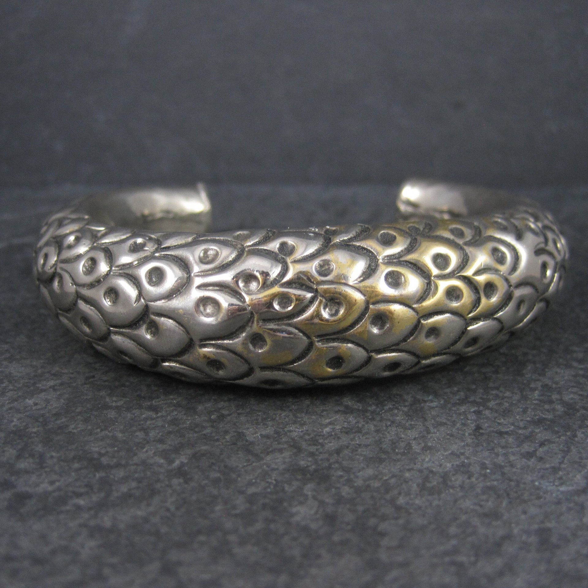 Antique Hollow Peacock Rattle Cuff Bracelet 7.25 Inches