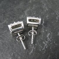 Chrome Diopside White Topaz Stud Earrings Estate Sterling Silver