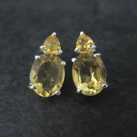 They feature trillion cut 4mm and oval cut 7x9mm citrine gemstones.