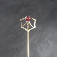 This beautiful, dainty art deco stick pin is 14k gold with a red spinel stone.