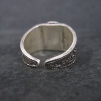 The face of this ring measures 9/16 of an inch north to south with a rise of 8mm off the finger.