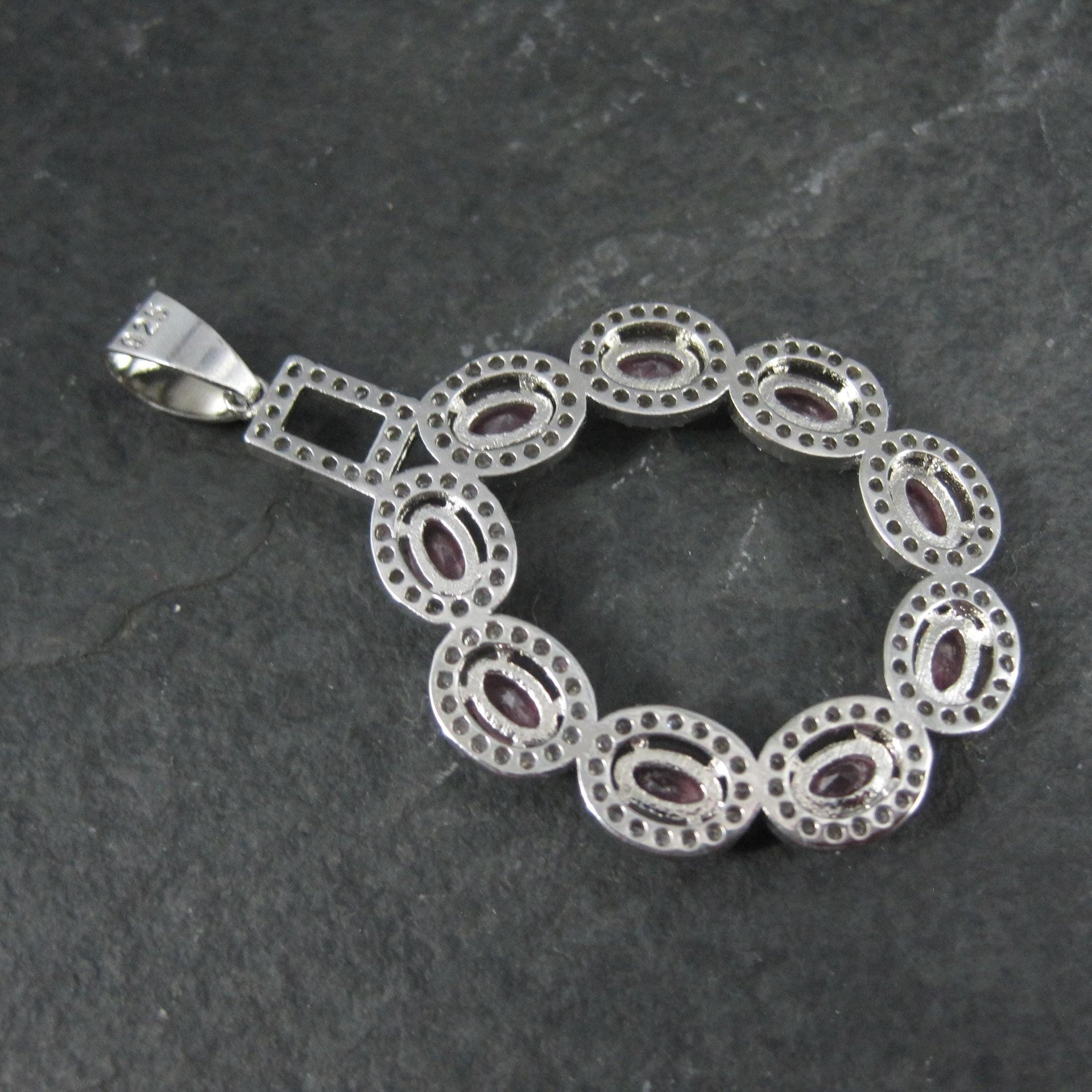 This gorgeous estate pendant is sterling silver with a combination of pink and clear cubic zirconia stones.