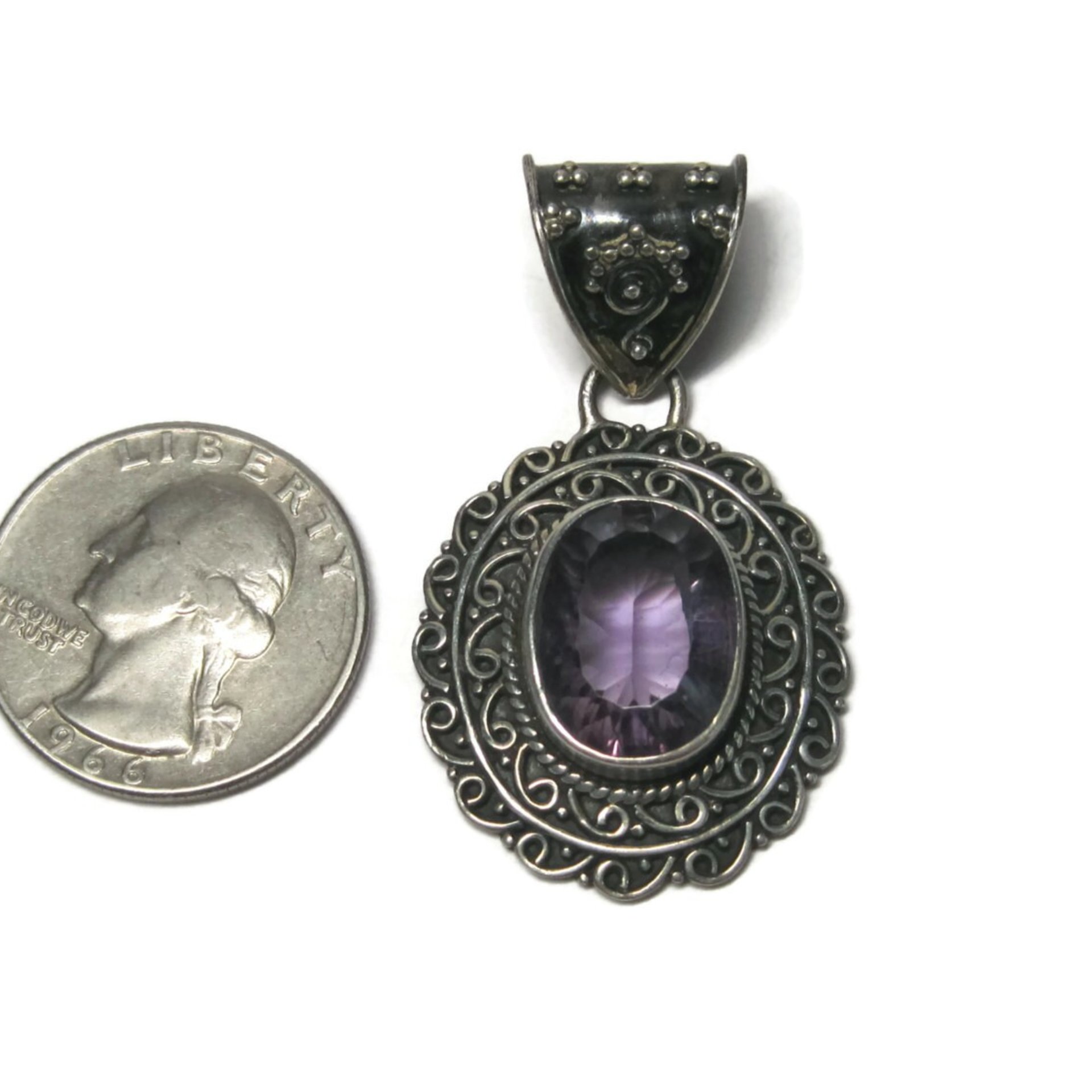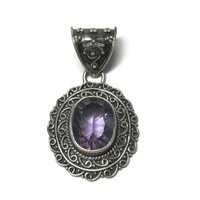 Large Balinese Sterling Amethyst Pendant