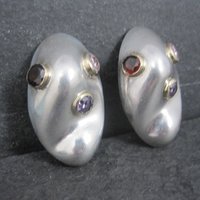 These big, beautiful and unusual clip on earrings are sterling silver with gold bezels.
