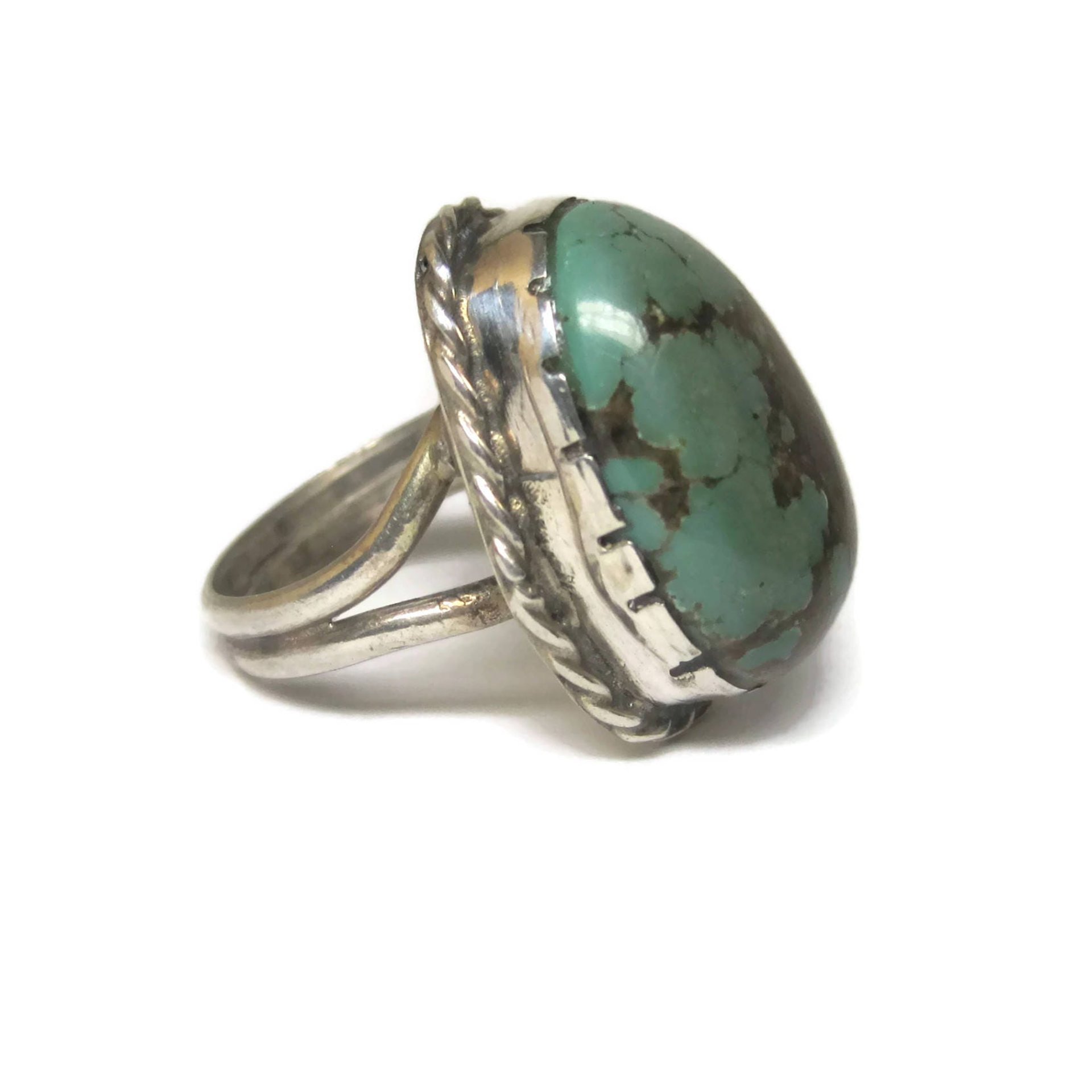 Large Vintage Southwestern Green Turquoise Ring Size 6
