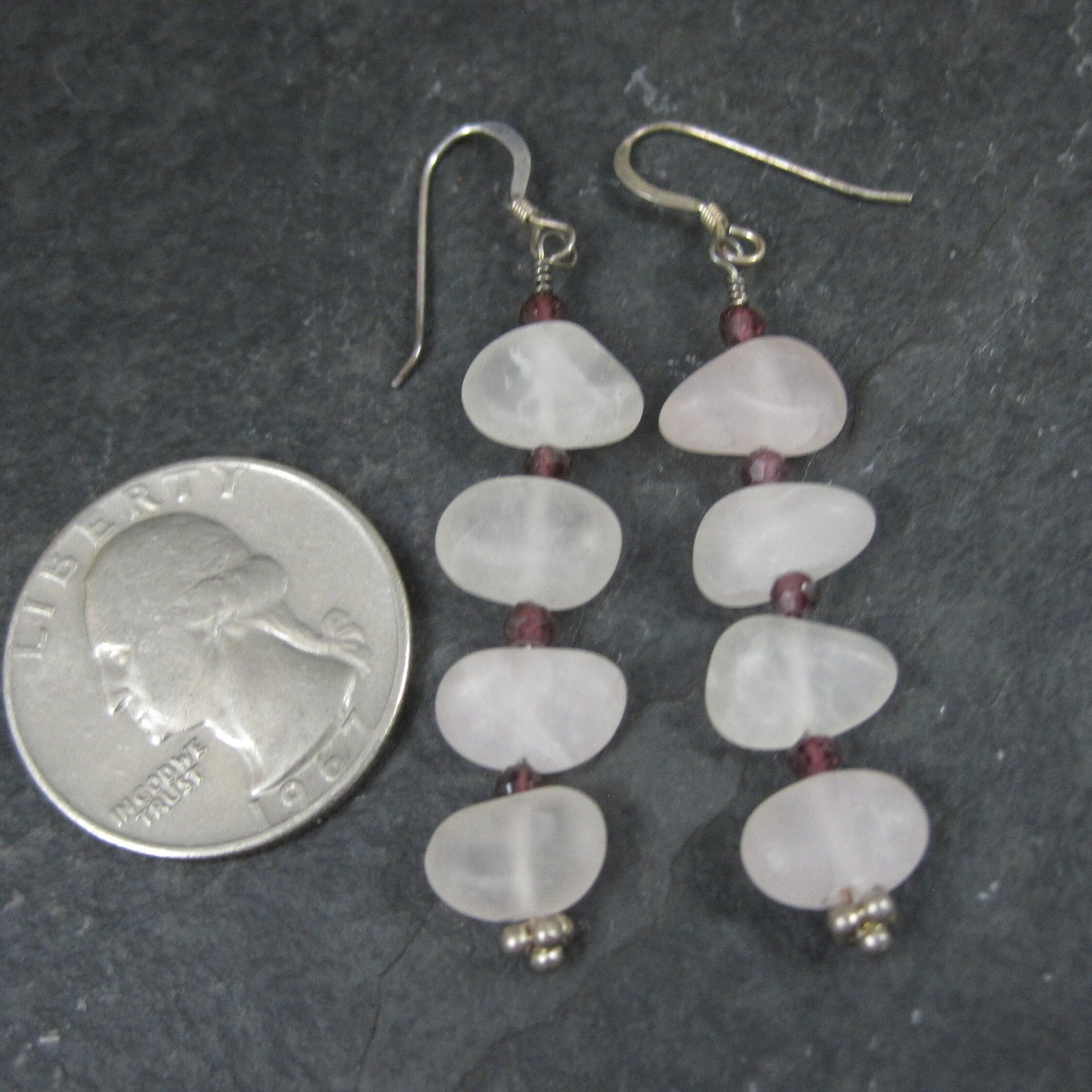 These beautiful 1990s earrings are sterling silver with an alternating combination of rose quartz and purple crystal beads.