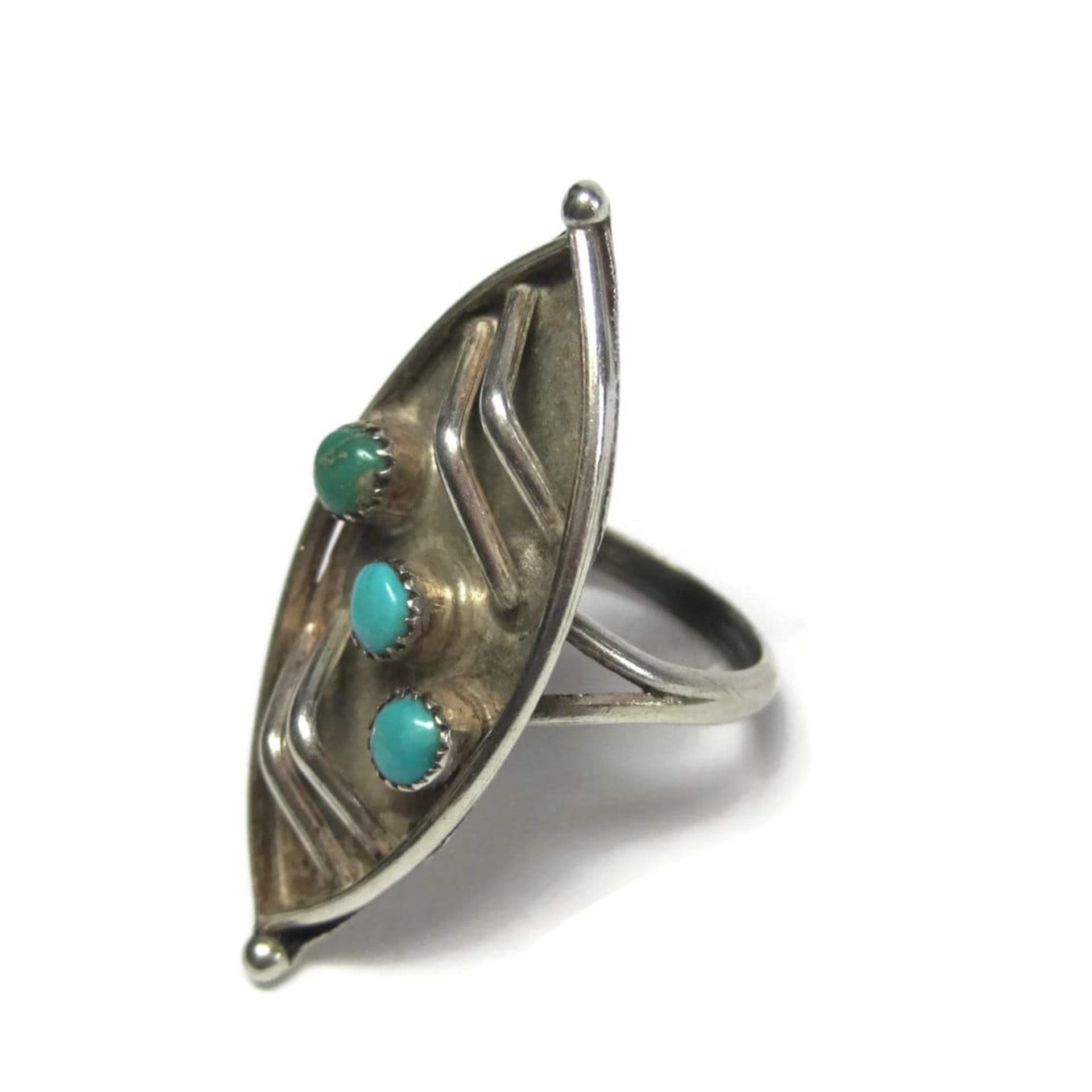 Long Vintage Navajo Sterling Turquoise Ring Size 7