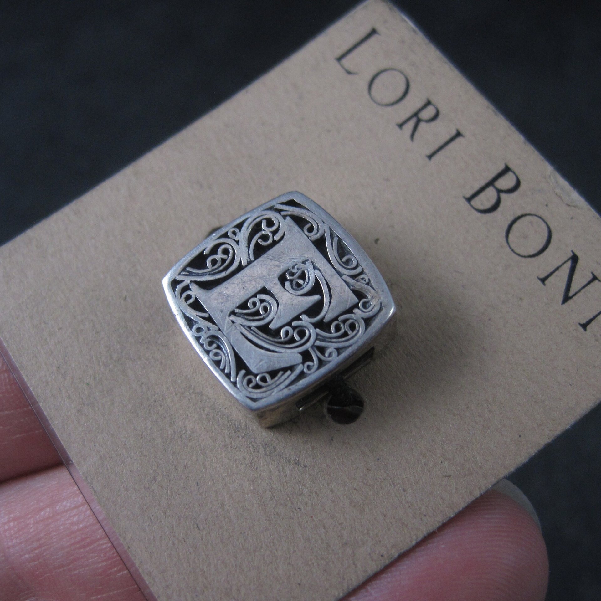 This beautiful charm slide is from the "Love Letter" collection by Lori Bonn.