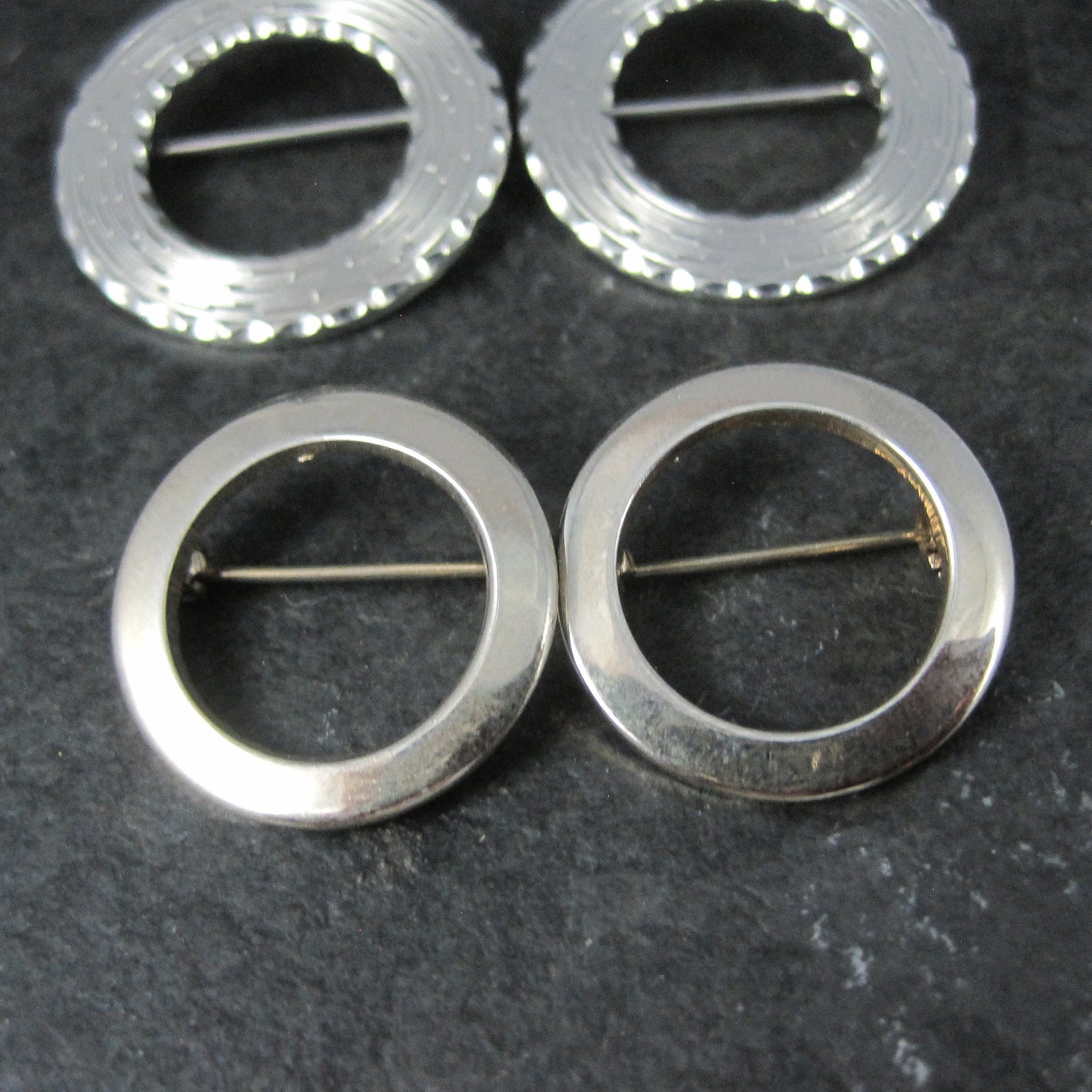 Lot of 4 Silver Tone Circle Brooches New Old Stock