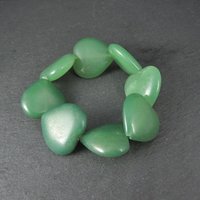 Lot of 8 Jadeite Jade Heart Beads 24mm $10.00 Only 1 available Quantity 8 jadeite heart beads 24mm Could be worn as a bracelet as they are strung on stretchy rubber wire Treatment, if any, unknown