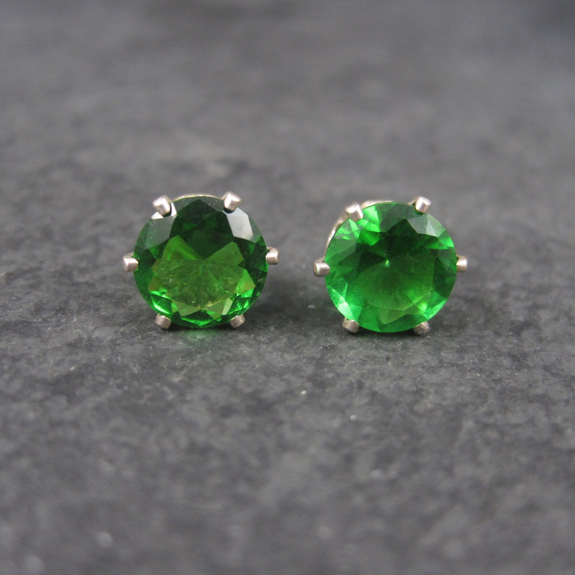 May Birthstone Emerald Sterling Stud Earrings 8mm