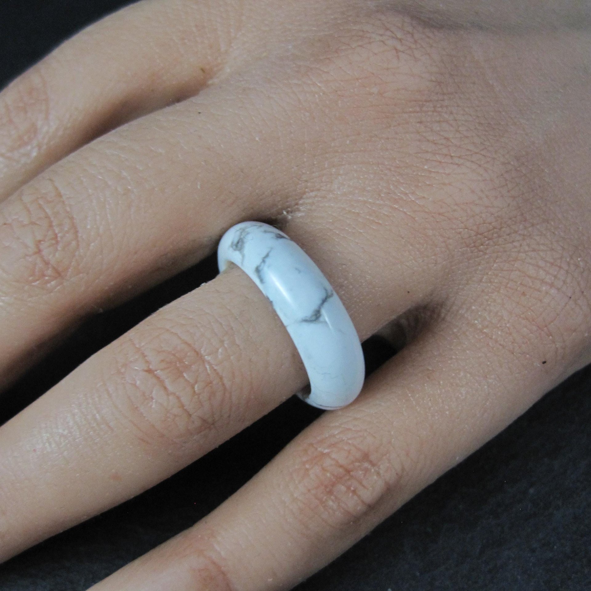 Solid Howlite Band Ring Size 8 $10.00 Only 1 available Quantity This beautiful howlite band ring measures 6mm wide. Size 8 Condition: Excellent
