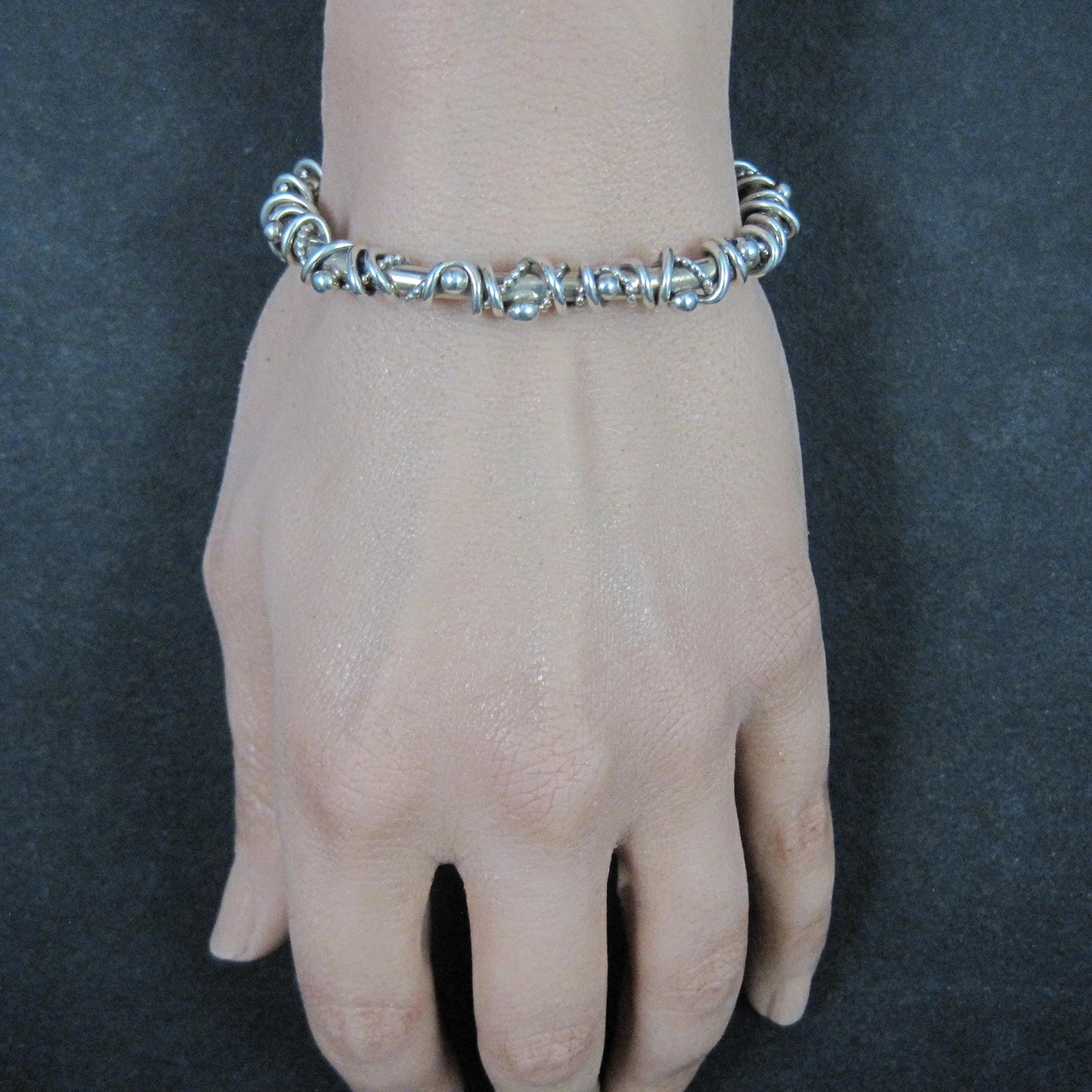Southwestern Brutalist Sterling Cuff Bracelet 5.5 Inches Wire Wrapped Twisted Silver