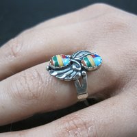 Southwestern Sterling Inlay Feather Ring Size 6 NOS