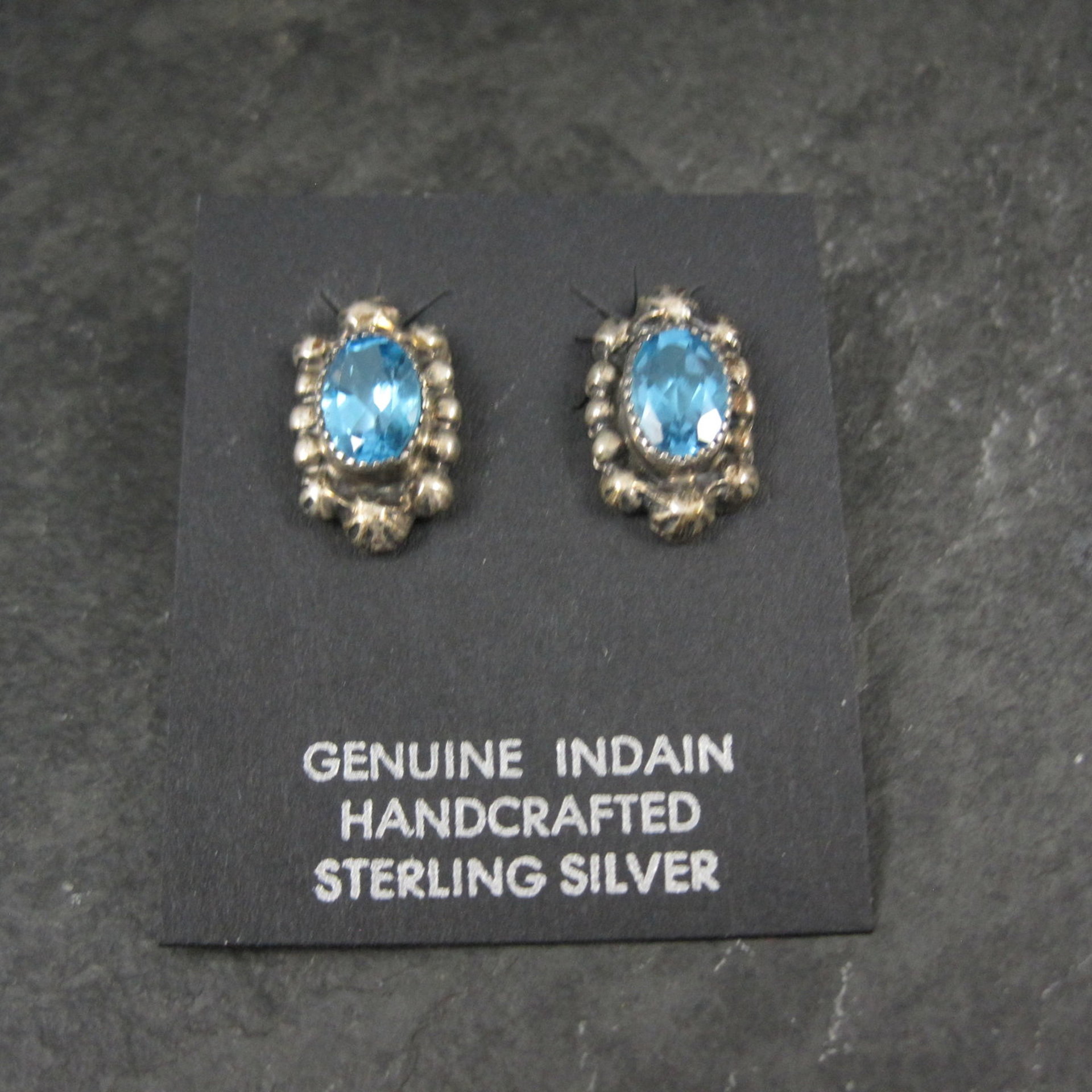 These beautiful Native American estate earrings are sterling silver with blue topaz gemstones.