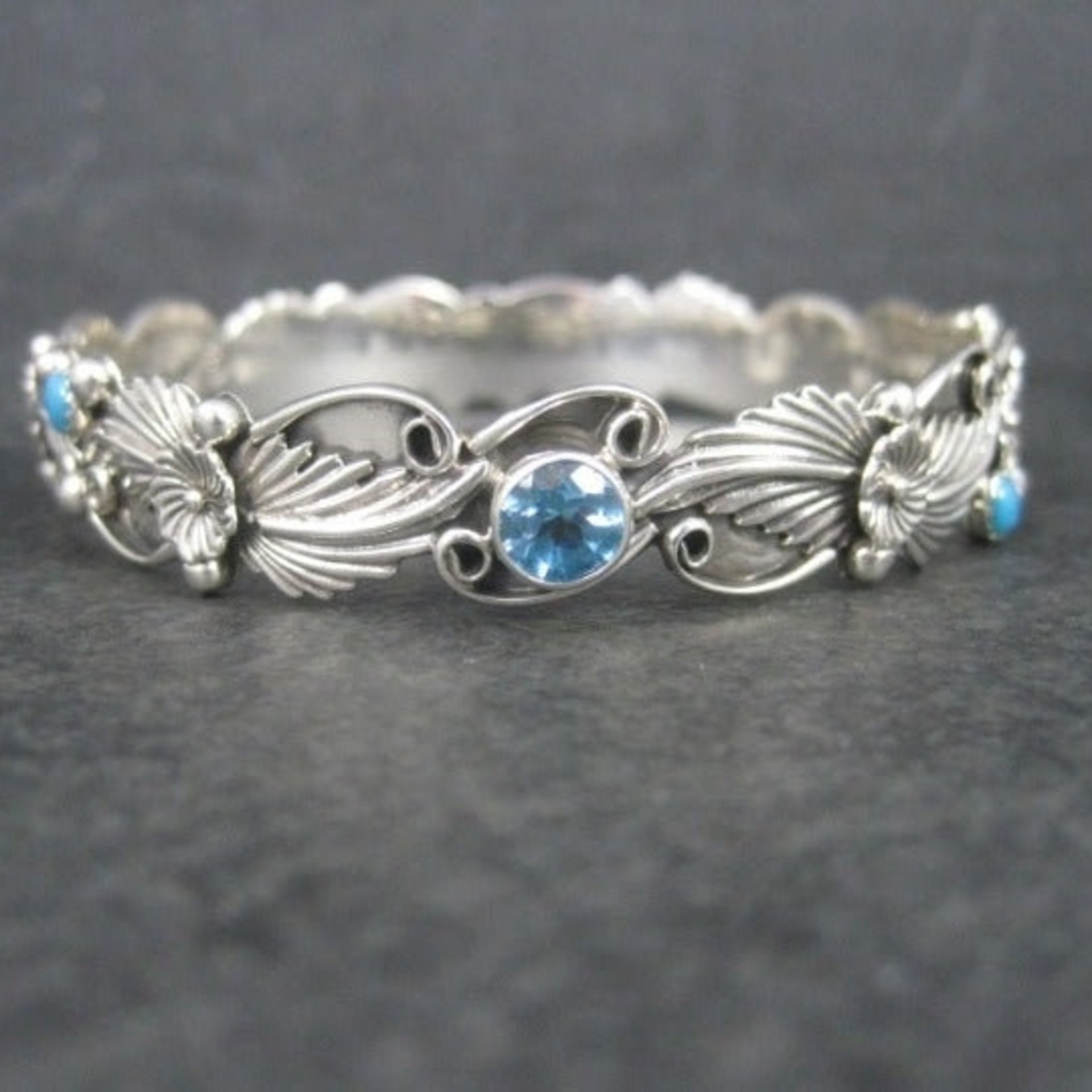 Southwestern Sterling Topaz Turquoise Bangle Bracelet