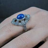 This gorgeous ring is sterling silver with genuine lapis lazuli and marcasite gemstones.