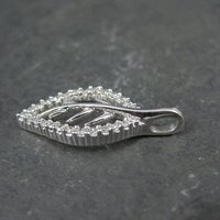 Vintage 10K White Gold Leaf Pendant | Diamond Accent Nature Jewelry