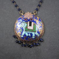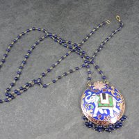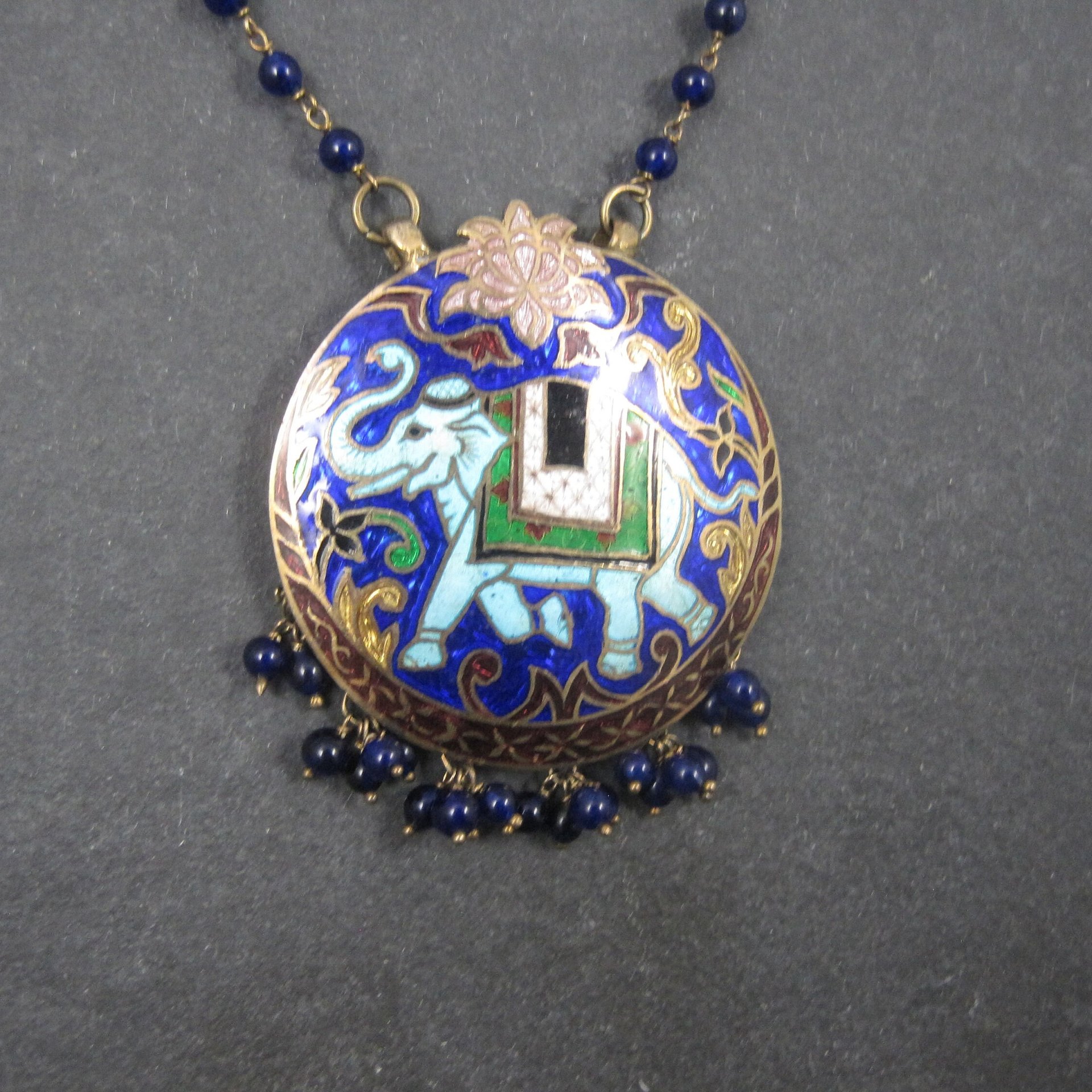 This gorgeous vintage necklace features stunning enamel work and blue glass beads.