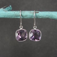 These beautiful estate earrings are sterling silver with 10mm amethyst gemstones.