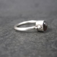 This beautiful estate ring is sterling silver with a 5x7mm cabochon cut garnet.