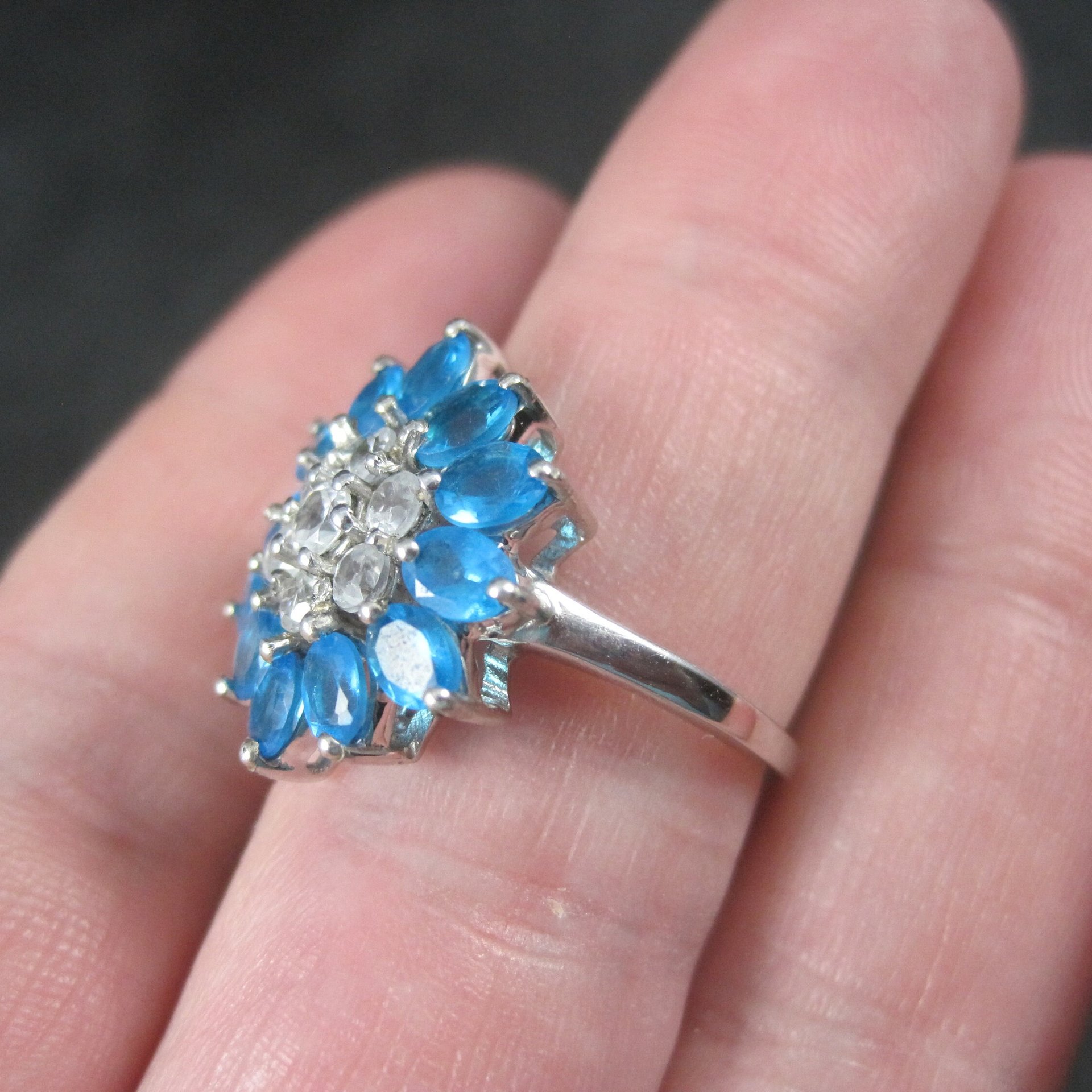 Vintage Topaz Flower Ring Size 7 Sterling