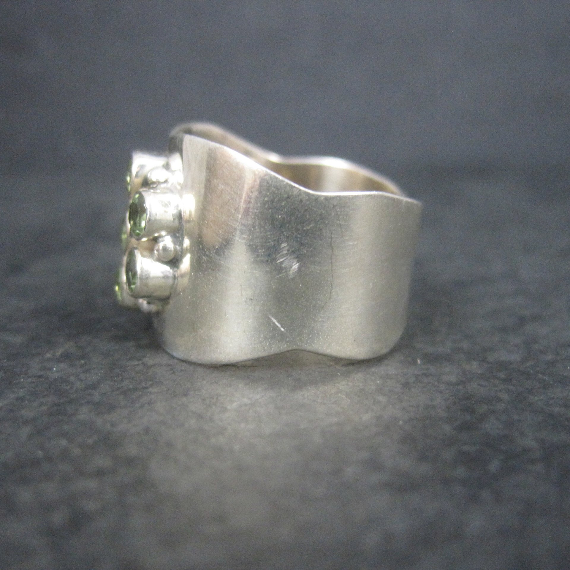Wide Sterling Gold Filled Peridot Flower Ring Size 8